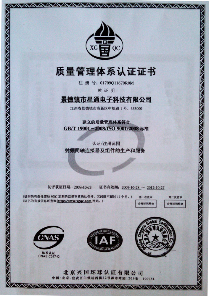 景德镇市星通电子科技公司是集研制、开发和生产电连接器为一体的高科技企业,公司拥有固定资产800万元人民币,座落在景德镇市高新区。2009年已通过ISO9001质量体子认证。