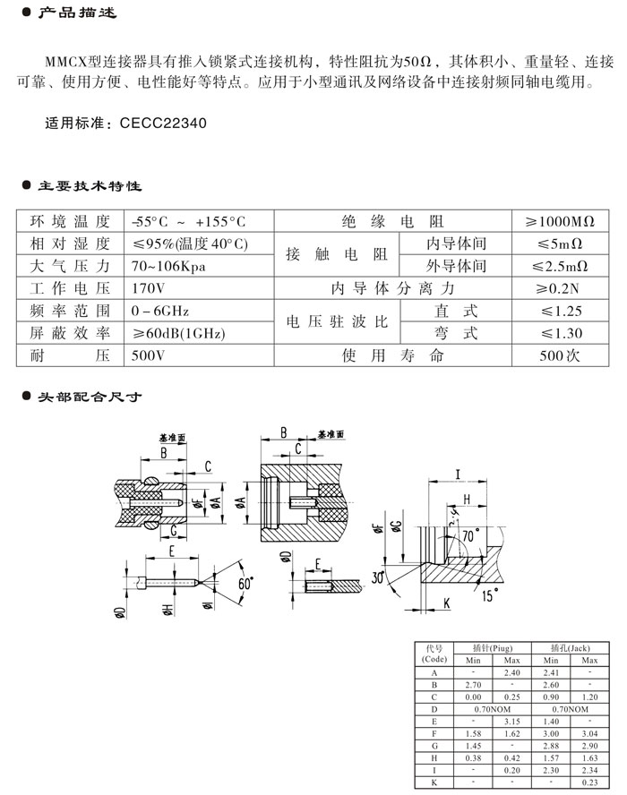 MMCX型射频同轴连接器